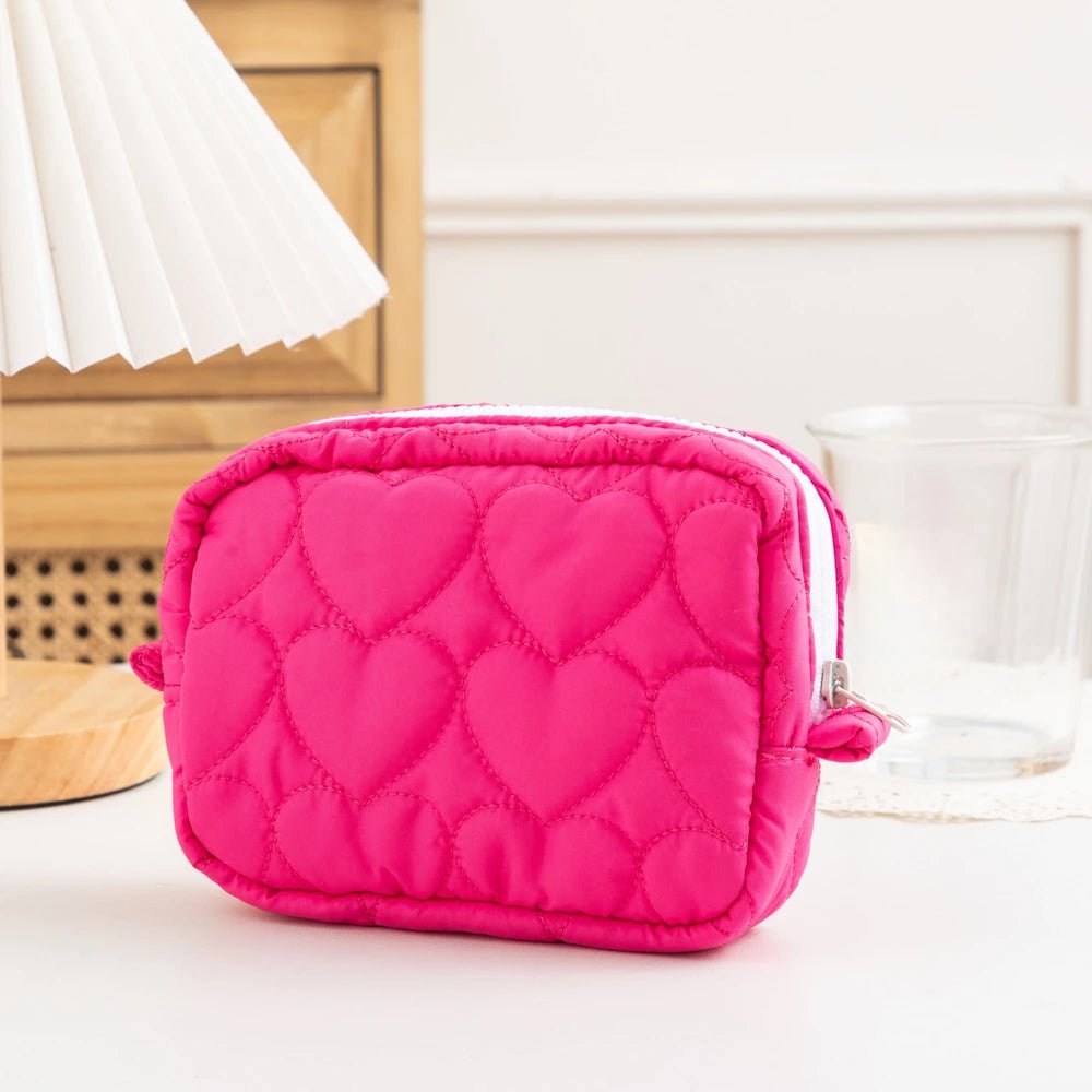 Fall in love with organization using our Bubble Heart Cosmetic Bags. Designed with a dreamy quilted bubble texture and adorable heart details, these makeup pouches are as cute as they are practical.